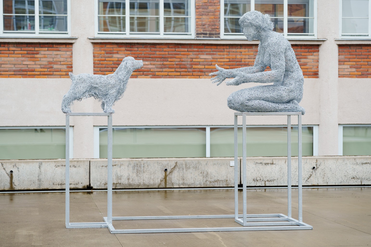 Součástí výstavy je dvojice plastik v exteriéru města - známý Vulpes Gott od Františka Skály a figurální dílo Pes, který tu není vytvořené přímo pro výstavu v ateliéru Veroniky Psotkové.